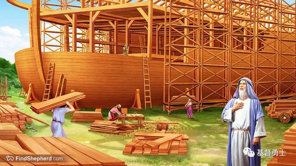 挪亚一家在败坏罪恶的世界里,难得没有被污染,专心制造方舟,躲过了神大洪水的审判。